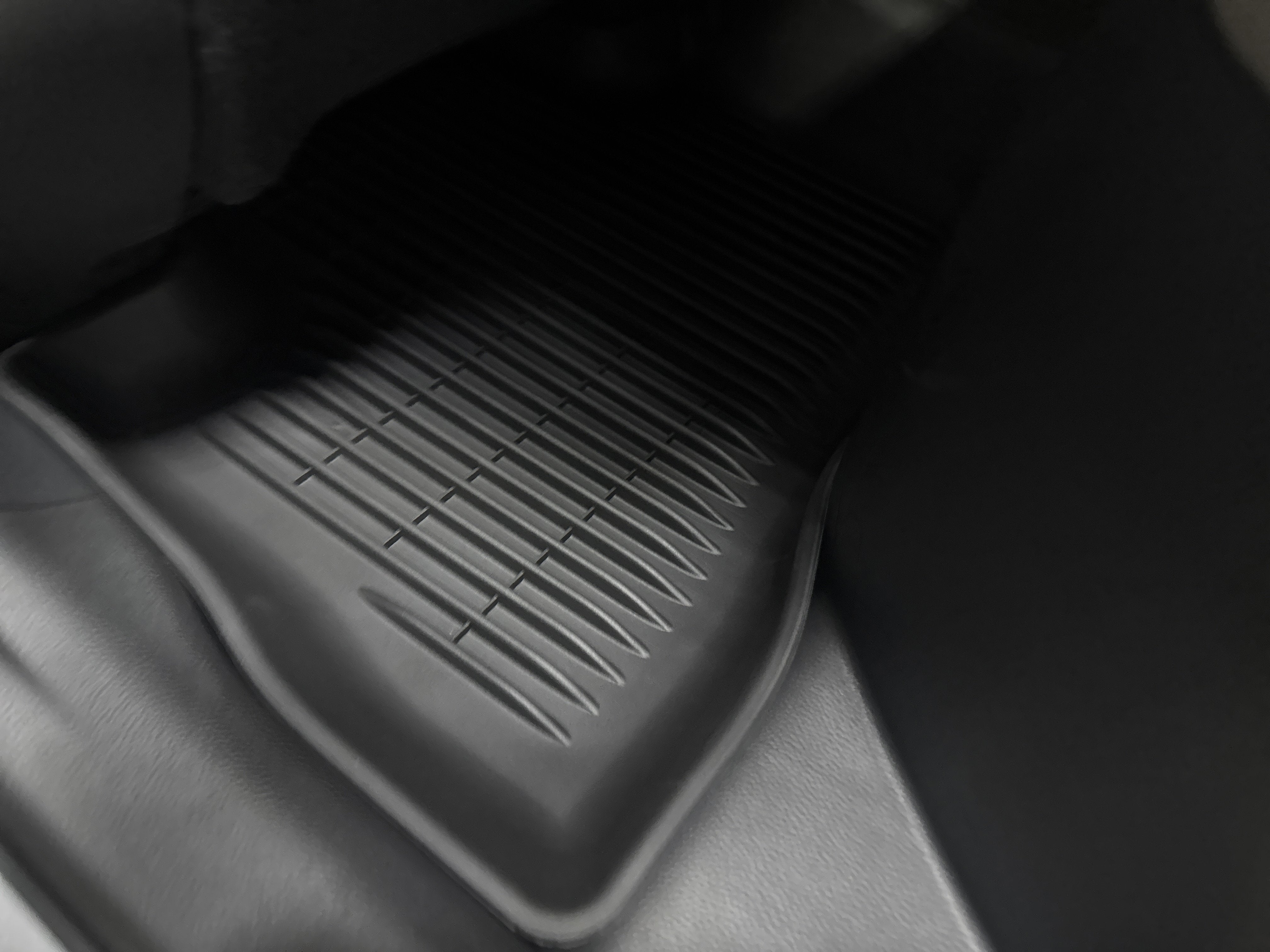 - Black carpet flooring with driver-side footrest