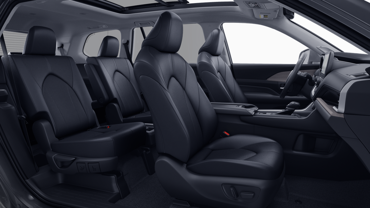 - 7-passenger seating with second-row fold-down captain's chairs and fold-down inboard armrests, adjustable headrests and two cup holders mounted on the floor; and 60/40 split, fold-down third-row seats with sliding headrests and recline function