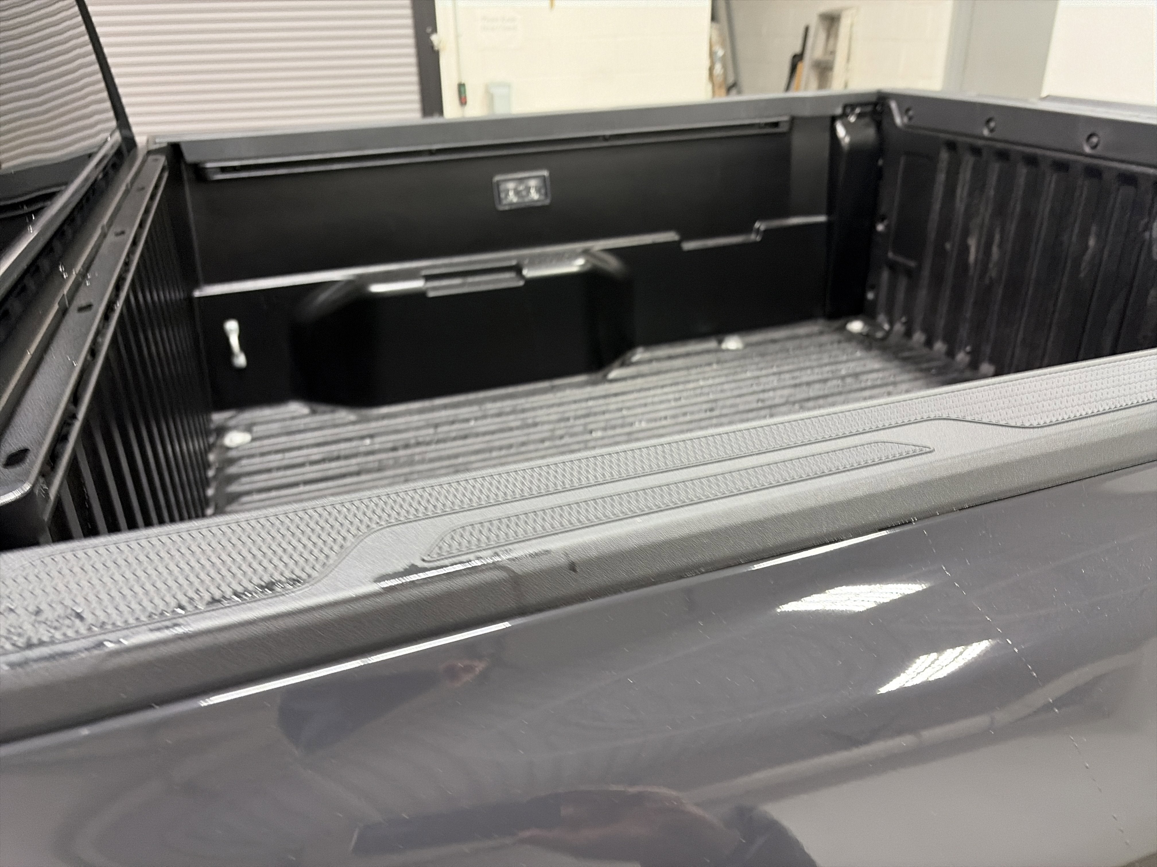 - Deck rail system with four adjustable tie-down cleats and fixed cargo bed tie-down points
