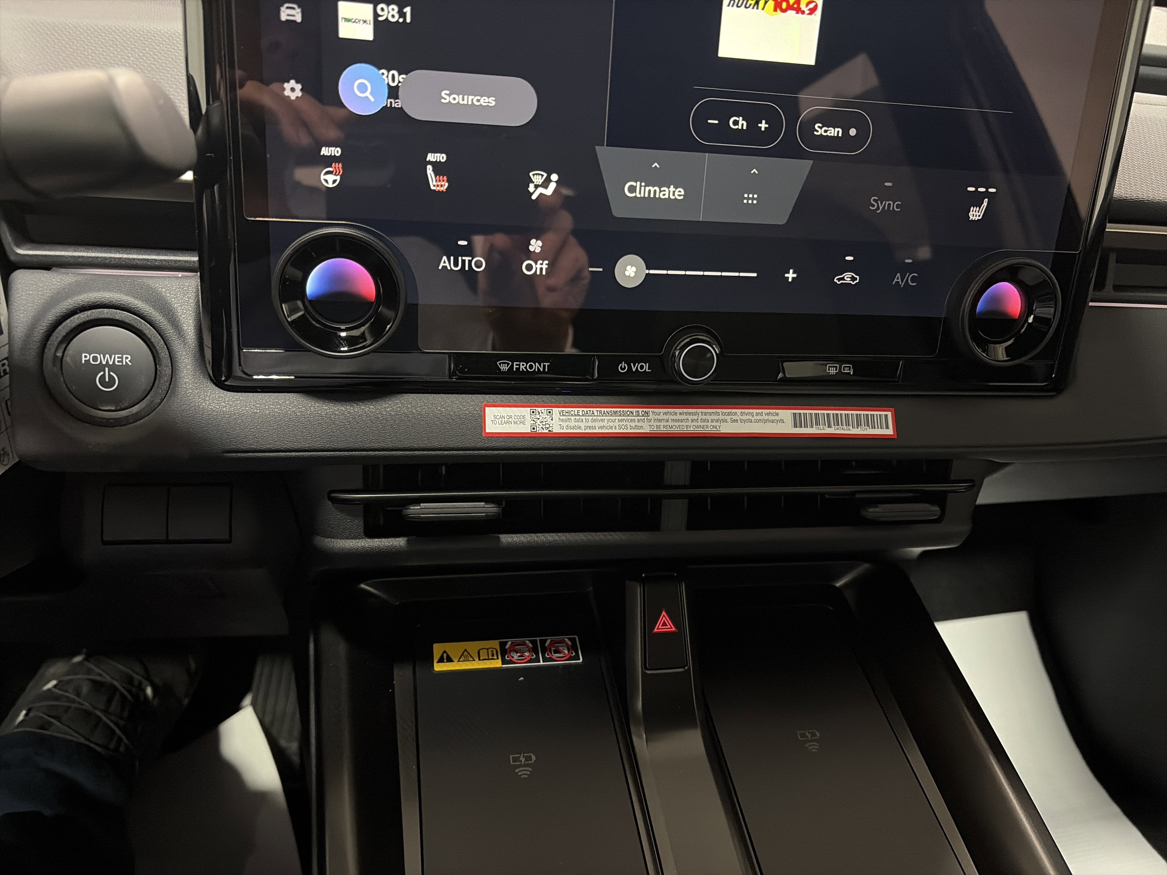- Center console with covered storage compartment, two cup holders, two Qi-compatible wireless chargers and front lower storage tray